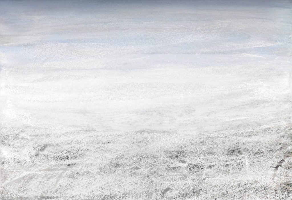 In the winter of 2019, I spent six weeks at Kunstnarhuset Messen in Ålvik in Norway. In search of silence, mountains and snow. My studio looked out over the Hardangerfjord, which was different every hour of the day. Beforehand, I had a certain idea about the landscape, but it turned out completely different. The mountains are much older than the Alps, so no high peaks, but elongated round shapes. The landscape is dark and heavy. The mountains, sometimes blue, sometimes deep black, rise steeply along the fjord. But when they are covered with snow, silence appears.